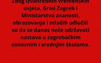 Poštovani, Zbog izvanrednih vremenskih uvjeta,...